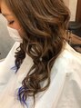 今回紹介するのはカラーでツヤ感が出るように少し色をいれてベージュアッシュで仕上げています。エクステは長めで50束付けてアクセントに原色エクステブルーをつけました。