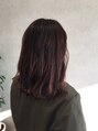 切りっぱなしの毛先に厚みのあるミディアムボブ。少し外ハネアレンジすることで重すぎないシルエットに。根元から毛先にかけての自然なグラデーションは、退色していく過程も気になりにくいカラーです。