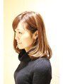 肩につくくらいのミディアムレングスでアクセントとしてハイライトを追加しました。今まで作っていなかったバングを作る事で柔らかさを出して、フェミニンな印象に仕上げました。【吉祥寺駅/オーガニック/AVEDA(アヴェダ)】