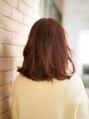 扱いやすいミディアムボブ。目あたりからのランダムゆるふわパーマがカジュアルプラスかわいい雰囲気☆流しバングで抜け感をつくって◎ツヤ感と深みの落ち着いたショコラカラーで大人女子のかわいい雰囲気に☆