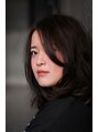 長めの前髪に毛先大きめのカールをクールなイメージになるようにランダムに巻いています。