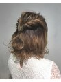 外ハネベースに、ウェーブスタイルにし、トップ付近を、ねじって少しラフでウェットな感じにまとめたアレンジ!!バックにアクセサリーをつけて、さらに可愛く!!