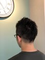 フロントとトップはパーマがでやすいように長めにのこして全体にランダムに弱めのスパイラルパーマをあてます。サイドと後ろはツーブロックでさっぱり刈り上げで完成。