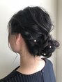 下の方でまとめたアップスタイルです☆サイドは編み込みでかわいさもありますがパールピンで大人っぽさも出しています♪