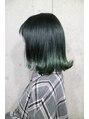 ダークグリーンベースに毛先ライトグリーンのグラデーション/ホットペッパービューティー