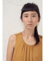 前髪パッツンにストレートロングの定番スタイルです。ラメが多めのシャドウでしっかりめにのせることで黒スタイルなのに華やか♪