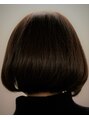 重ためのボブでもダーク系のアッシュで柔らかな軽い仕上がりです。内側にある程度、セニングが入ってるのでまとめやすい髪型