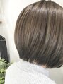 首元に少しレイヤーを入れたボブ、明るめのアッシュベージュで重く見えないように。