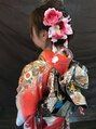 成人式、卒業式の着付け&ヘアセット。お客様の雰囲気に合わせモヒカンベースにスッキリと肩にかかるボブをヘアセットしました。