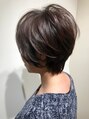 襟足を短くしてトップに高さを出したショートボブ。ボリュームを出したい部分にはポイントでパーマを、根元の色が気になる方は明るくできる白髪染めを。くせがある方はポイントでストレートパーマを。どんな髪質でも対応させていただきます♪