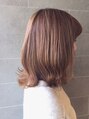 鎖骨下の、長めのボブ。ちょっぴり段を入れて、トップがふんわりしやすいように、くびれさせて大人っぽいボブに。全体に細くハイライトを入れて、グレージュでくすんでるけど透明感のあるカラー。