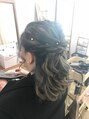 アッシュグレーでハーフアップ。パールピンを散らして、ブライダル、結婚式、二次会にもオススメ。花嫁お支度、袴、振袖、浴衣、着物の着付けも早朝より承ります【ヘアセット/ヘアメイク/ヘアアレンジ/早朝/立川/国分寺/浴衣/八王子/立川南/立川/浴衣/立川】