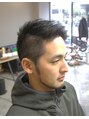 周りをハサミで刈込んで、トップを少し残して流したスタイル。刈上げを集めにすることで奇抜過ぎずどんなシーンにも対応できるスタイルです。アップバングで爽やかさもUP