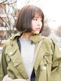 ワンカール巻いていますが、カットは重めの切りっぱなしボブです!全体は重めにカットしてあるので前髪は逆に軽めに「透け感」がでるようにしています。前髪に「透け感」を出すことで子供っぽく見えがちな重ためボブに見えすぎないようにしています。
