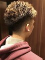 横に流しやすいように根元を流したい方向に矯正し、質感が細かくなるようにアイロンパーマでかけました!