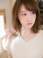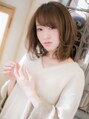 ベースは鎖骨レングス。あごラインにレイヤーを入れて、くびれのあるシルエットに。パーマは毛先のみワンカール。バックの毛先を外ハネにするのは難しいので、顔周りの毛先を外ハネにする事でどの角度から見ても好バランスのスタイルに☆
