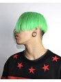 ジョンコナーカットと髪色はブリーチした後、マニックパニックで原色のライムグリーンをオン。