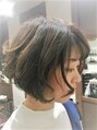 えりあしをすっきりとさせた少し前下がりのボブをベースに、スライドカットで毛先に表情が出るようにカットしています。シンプルでも動きをきかせた、ふんわりスタイルも簡単につくれるON/OFF自在のスタイルです!!