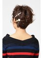 くるりんぱをつなげるだけで編み込んだようなニュアンスがつくれる、技ありアレンジ。ショートヘアも気軽にイメチェンできます。長めの前髪を活かして、細かなスパイラルに巻いて、全体のバランスをとって。【EARTH新浦安店】