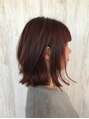 切りっぱなしボブより少しだけ段差をいれて柔らかくしました。カラーは原色に近いレッドですがバイオレットも混ぜつつ上品なレッドに仕上げました。