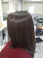 オフィスでも派手にならないアッシュベージュサラサラヘア!くすんだ色味で落ち着かせて、でも艶感ばっちりのストレートヘアです。