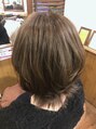 赤味を抑えたアッシュベージュです!やや襟足を残したウルフテイスト♪襟足のはね感がかわいいスタイルです♪