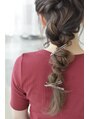 くるりんぱと、ねじねじをミックスさせた編み下ろしのスタイルです♪カラーでハイライトが入っていると束感が出て、よりオシャレ感がアップします!!