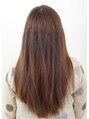 大人の髪質改善の施術前・後です。中間から毛先のダメージが強く、カラーの退色やパサつきが見られる状態でした。髪質改善により、70%ほどは髪の補修ができ、艶のある美髪に近づきました。