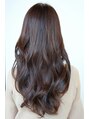 ロングのウェーブ☆スタイルです。アイロンのミックス巻きで重ならない強めにランダムな毛流れをつくっています。動きが出るよう全体は軽いスタイルに。カラーは7レベルのアプリコットモーブで髪のツヤがより強調される色みとなっています。