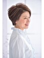 襟の部分をスッキリと見せ、トップから軽やかにボリューム感がでるスタイルです。シニア層のお客様に人気です。