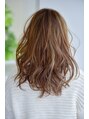 ラフなカールウェーブスタイルで、細めのハイライトを入れた、エアリー感のあるスタイル。レイヤーが入っており、毛先の動きに立体感とエアリー感を演出しています。