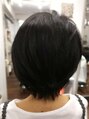 TOPと後頭部がぺたんこでボリュームがでないエイジングでお悩みのお客様です。希望は丸みを帯びた女性らしいかわいらしいヘアスタイル。ピュアミングでふんわりさせ骨格補正カット。ナ&ハーブ染めで5割ほどの白髪を地毛に近いダークブラウンに染めました。
