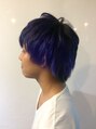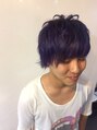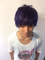 ブリーチ後ポイントで明るめのムラサキ、ベースは深みのあるムラサキに★カットはワックスをもみこむだけで空気感の出るようにしました。
