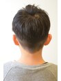 サイドとバックを刈り上げ、フリンジをアシンメトリーしたショートスタイルです。お子様のヘアスタイルは短くスッキリさせたいけど、スポーツ刈りみたいなショートは嫌だなって方にお勧めのヘアスタイルです。