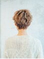 子供っぽくなりやすいベリーショートですが、どこか品のある柔らかい雰囲気のベリーショートに仕上げました。カラーはハイトーンでも優しめのミルクティーベージュに。 全体にパーマをかけて、きつくなりすぎないようにしてあります。