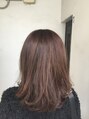 ローレイヤーベースのゆったりウェーブ。カラーはブリーチ無しで赤みを出さないようにアッシュ系。
