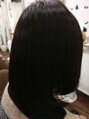 髪のダメージが気になっていたのでヘナとライトブラウンを1:1のブレンドで染めました。退色部分にヘナとハーブの色味が入り綺麗なツヤのあるボブスタイルになりました。