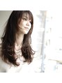 - 顔まわりにレイヤーをいれランダムに細かいハイライトを入れ透明感をエアーウェーブでハーフカール