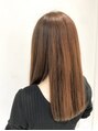 カットはボブベースで重いスタイル。春に向けて温かみのある明るい色に。