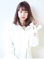 前髪は長めのおろし流しでデザイン。横幅は広めにして縦に長く見せないようにしました。アゴ下からボリュームが出るようにレイヤーを入れて全体的なバランスを良くしています。甘い色味のピンクブラウン。女性らしい可愛いモテ髪に。【青山/表参道】