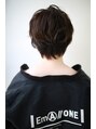 アレンジしやすいようにカットしています。かき上げた前髪が大人モードなスタイル。ダークカラーでさらに大人っぽく。