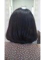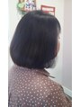 サイドの長さは やや前下がりのボブスタイルです。細くてボリュームの出ない髪質の方も気にならない長さのスタイルです。グレーカラーのピンクで可愛い大人上品スタイルです。