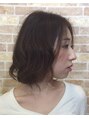 毛の細いショートボブをコテでランダムに巻いて、自然なゆるふわウェーブを再現。