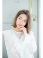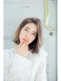 ブラントカットでわざと重みをのこし、切りっぱなしボブよりも少しレイヤーで軽さをだした、ふんわりしやすい外ハネボブヘアーです。カラーは、ベースにハイライトを入れ、明るめのグレージュで仕上げました。