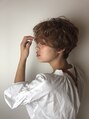 前髪伸ばしかけの方必見!ショートの立ち上げセンターパートで一気にオシャレな雰囲気に♪カール感を大きめにすることで、無造作感とフェミニンさもプラス*