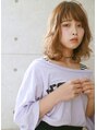 春夏にむけて透明度高め+柔らかな髪質にみえるような髪色【キャメルベージュ】。内巻き、外巻きのミックス巻きでふわふわゆれウェーブ。