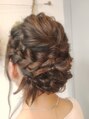 編み込みでまとめたアップスタイル☆パールの飾りで華やかさをプラスしています!