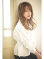 全体は内巻きですが、顔周りに外巻きを入れて動きを出しました。前髪は、薄めに流して軽さをプラス。
