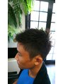 サイド、バックは短く刈り上げ、トップ~フロントはやや長くなるように設定。 全体的に間引くようなカットで動きを作り、フォワードに毛流れを出すことでアクティブ&スポーティーな印象に!子供から大人まで誰でも出来る好印象スタイル