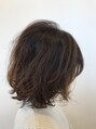 長さは肩につくか、つかないか位です。トップは大きめのパーマで根本の立ち上がりをつけ、中間・毛先はランダムにしっかり動きをつけた前髪長めのボブスタイルです。